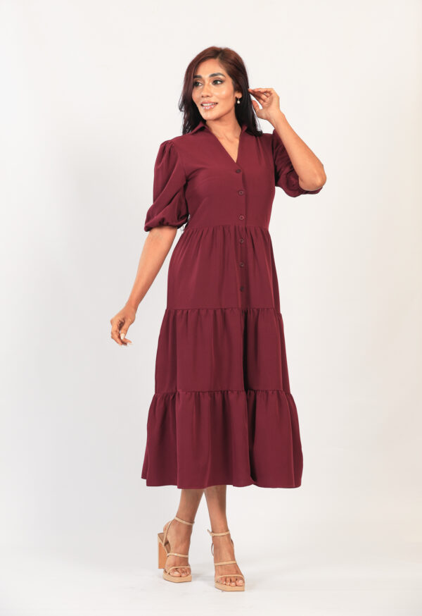 Tiered Button Up Maxi w Short Sleeves