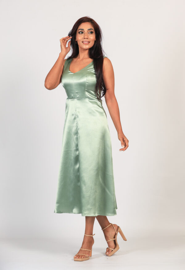 Back Tie Up Satin Dress w Lining